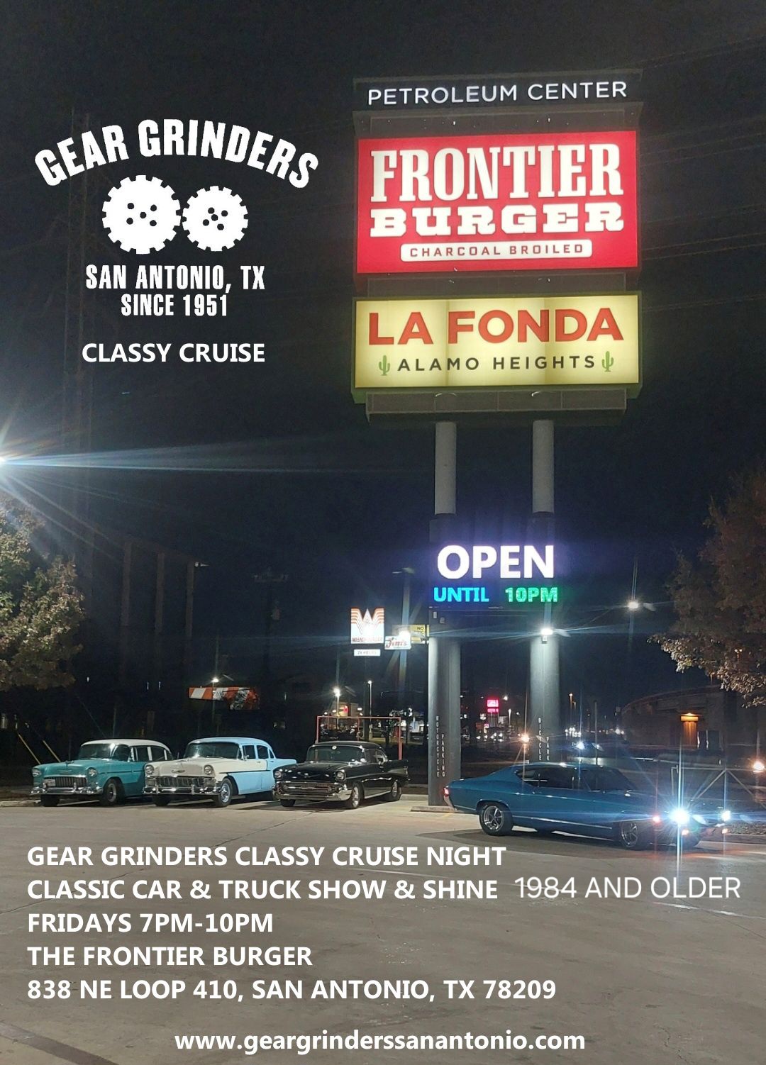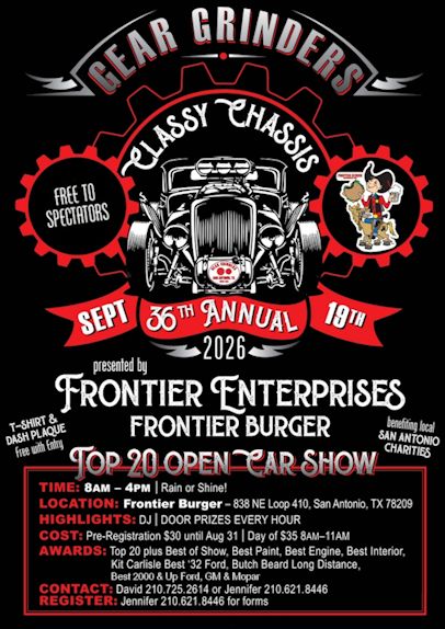 Gear Grinders are a non for profit organization created in 1951 of San Antonio drag racers and hot rodders. The club has been in operation ever since. If you have a car/truck and you are interested in membership, you can join us in our monthly meetings, shows  or hangouts to get to know us and learn more.